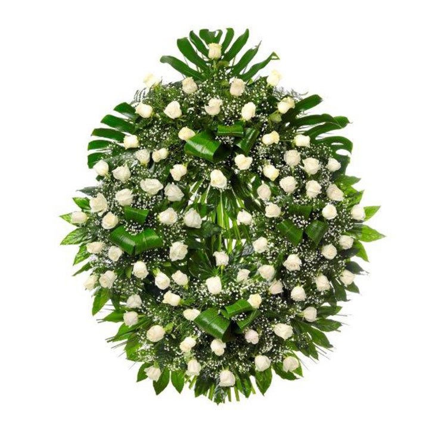 Corona modelo 9B de rosas blancas. Aro de 80cm, 75 rosas