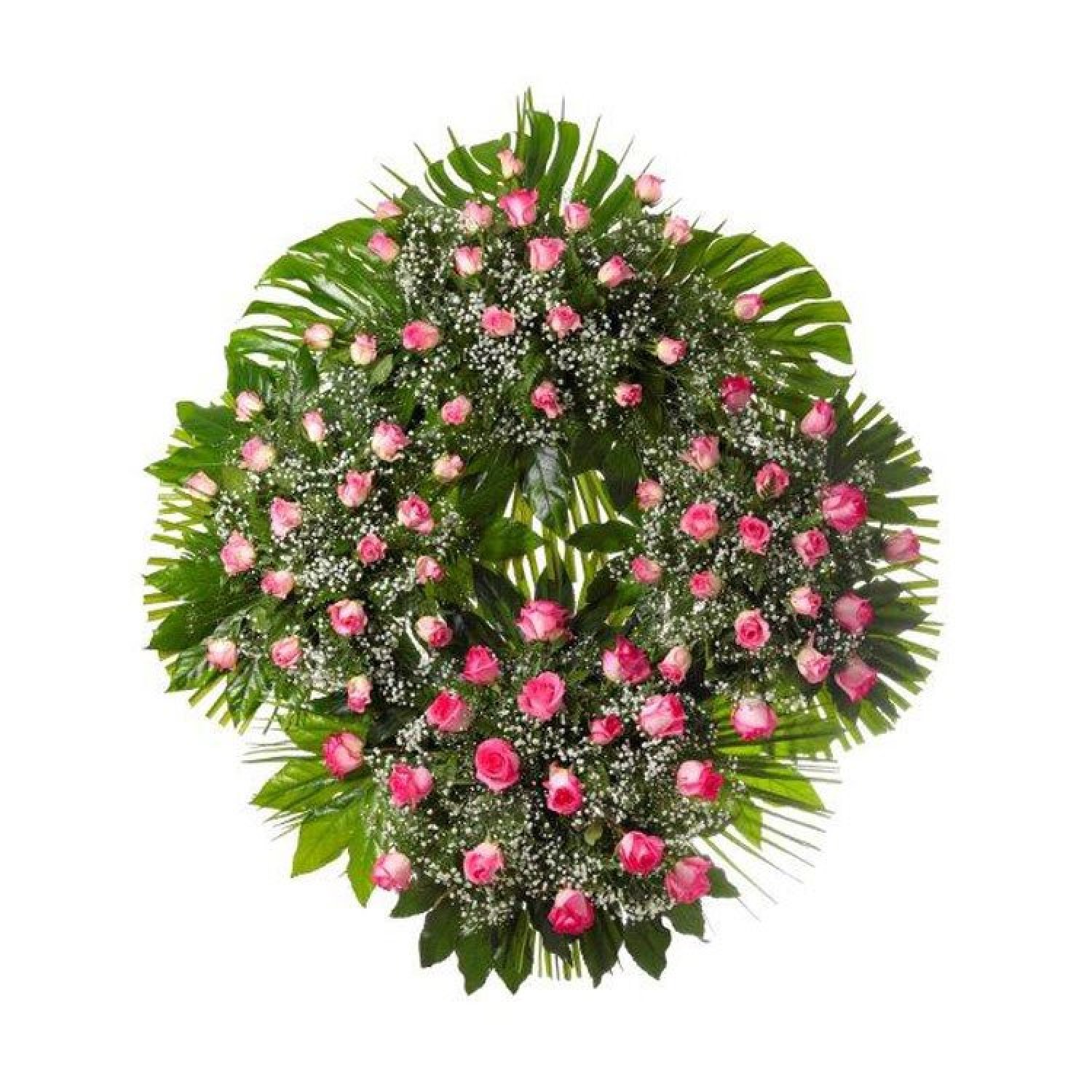 Corona modelo 9C de rosas rosas. Aro de 80cm, 75 rosas
