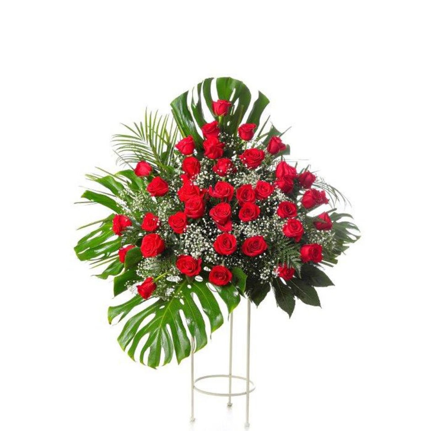 Palma modelo 10J mediana de rosas rojas. 36 rosas.